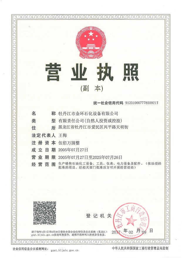 Mudanjiang Jinhuan Petrochemical Equipment CO.,LTD 牡丹江市金環(huán)石化設(shè)備有限公司 版權(quán)所有 www.rendongjinshu.com