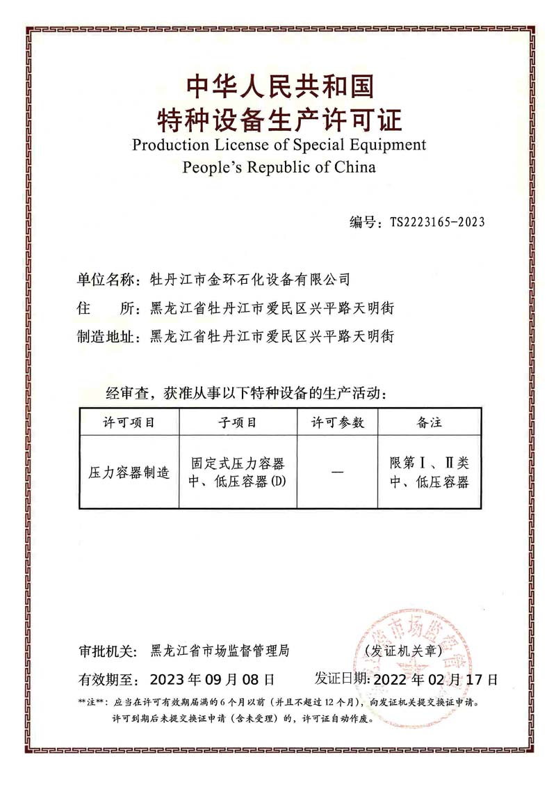 Mudanjiang Jinhuan Petrochemical Equipment CO.,LTD 牡丹江市金環(huán)石化設(shè)備有限公司 版權(quán)所有 www.rendongjinshu.com