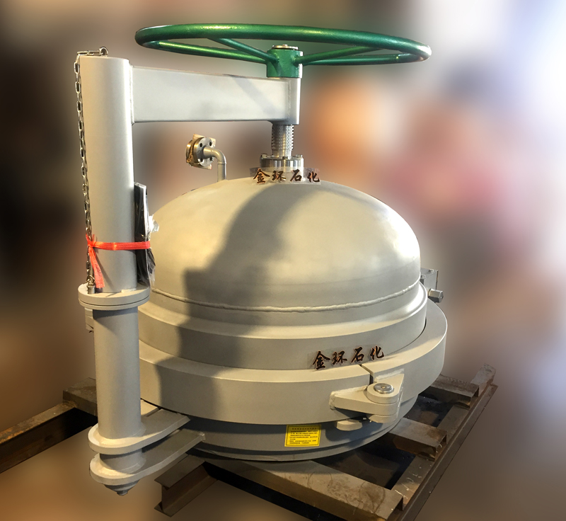 快開(kāi)盲板是用于壓力管道或壓力容器的圓形開(kāi)口上的一種機(jī)械裝置。一般由筒體法蘭、頭蓋、勾圈或卡箍、密封圈、安全聯(lián)鎖機(jī)構(gòu)、開(kāi)閉機(jī)構(gòu)、轉(zhuǎn)臂及短節(jié)(需要時(shí))等部件構(gòu)成。