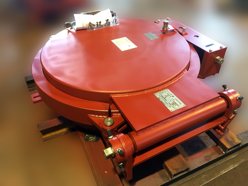 快開(kāi)盲板是用于壓力管道或壓力容器的圓形開(kāi)口上的一種機(jī)械裝置。一般由筒體法蘭、頭蓋、勾圈或卡箍、密封圈、安全聯(lián)鎖機(jī)構(gòu)、開(kāi)閉機(jī)構(gòu)、轉(zhuǎn)臂及短節(jié)(需要時(shí))等部件構(gòu)成。